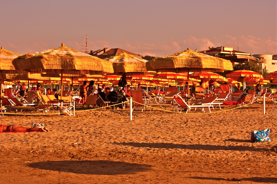One of the lovely things about Pescara is its restaurants and promenade that flow along the sand, and the umbrellas that line sea. The umbrellas are a thing of perfection, as during those scorching hot summer days, you’ll want to take in a little shade or lye on one of the drawn out lounge chairs. With many locals and tourists firmly planting their picnic along the shore, you’ll be immersed between kids frolicking in the sand, ladies lounging around and a soccer ball or two being juggled around the mass of people.